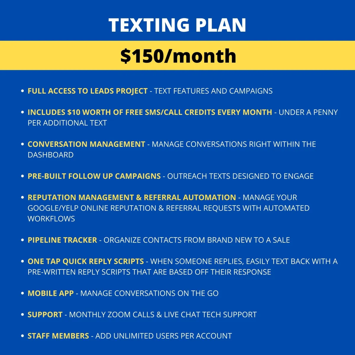 Text campaigns are proven to get your clients/leads talking. Let the Leads Project system text your list until they begin to respond.